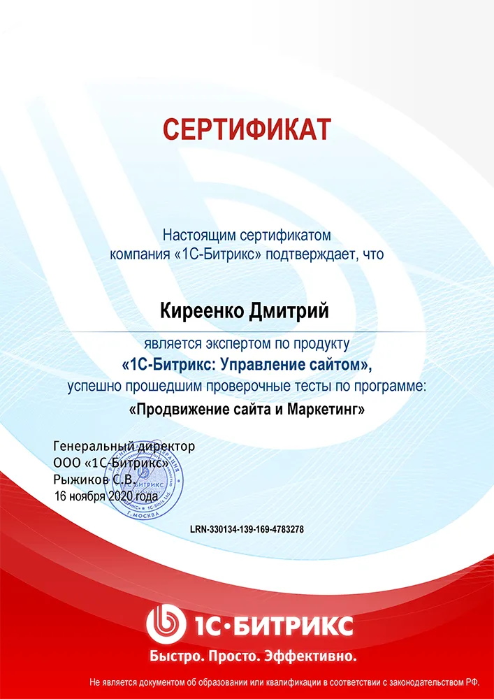 Мы являемся официальными партнерами Google Partners и сертифицированным агентством Яндекс.Директ, Bitrix, что гарантирует высокий уровень экспертизы в контекстной рекламе, SEO-продвижении и аналитике данных. Кроме того, команда обладает сертификами по управлению проектами (PMP, Agile/Scrum), что обеспечивает слаженную работу, прозрачность процессов и своевременную сдачу проектов в рамках оговорённых сроков и бюджета.